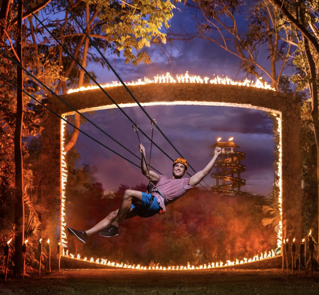 It’s the only night park in the Riviera Maya and according to the explorers it is also the most exciting. The adrenaline rises to the maximum among torches, impressive circuits of zip lines, underground lava rivers, and mysterious jungle paths.