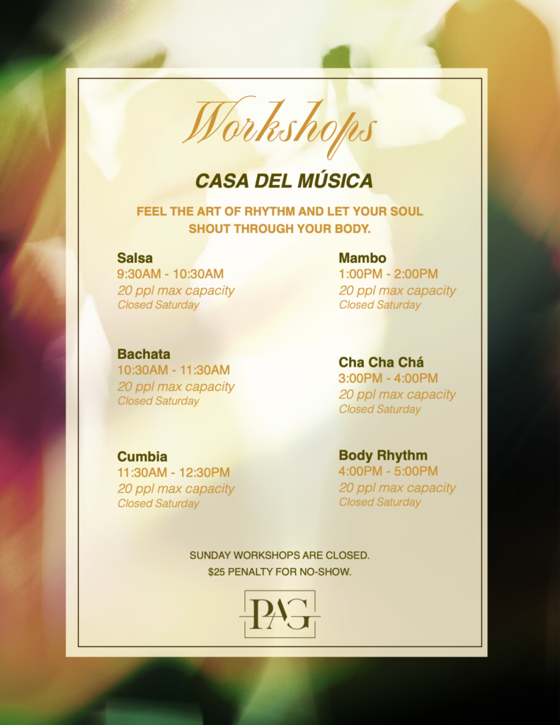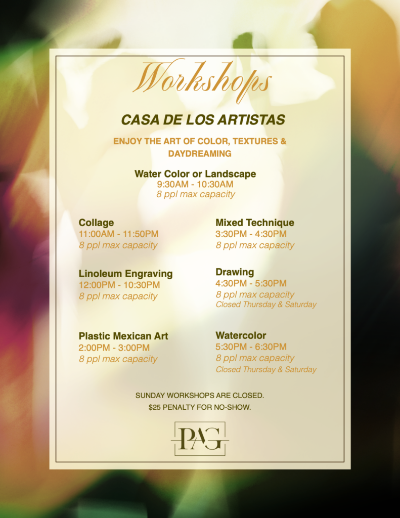 **Reservations are exclusively available to guests staying in the Artistas building.
