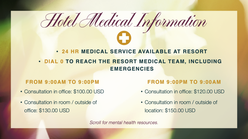 24/7 medical support is available at the resort—just dial “0” for assistance.